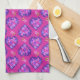 Chic Magenta Hearts and Flowers Kitchen Towel