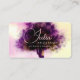 Chic Magical Violet Blush Pink Tree Illustration business card features script first name, last name and career in a professional text in front and full details in back, suitable for any profession, art director, copywriter, interior designs, lawyer, attorney, teacher, dentist, doctors, writer, makeup artist, hair stylist, etc.
