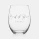 Chic Maid of Honor Customizable Black Script Stemless Wine Glass