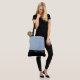 This lovely fashion forward tote bag shows the word "Maid of Honor" in white text color over black with the upper tote bag in Antique Blue. Has plenty of room for personalized text. Graphics and text are on both sides of this tote bag. Black handle. Customize further or buy as shown.