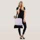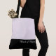 This lovely fashion forward tote bag shows the word "Maid of Honor" in white text color over black with the upper tote bag in custom Soft Blush Orchid. Has plenty of room for personalized text. Graphics and text are on both sides of this tote bag. Black handle. Customize further or buy as shown.