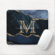 Chic Marble Agate Geode Navy Blue Gold Monogram Mouse Pad