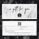 A beautiful modern chic white marble business gift certificate voucher with chic script, QR code and business logo. This minimalist gift certificate design is ideal for all types of businesses. Simply customize and make it your own.