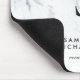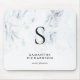 Be on brand while your at your desk with this chic mousepad. Featuring a subtle gray and white marble background, overlaid with your initial in black and your name and role/business name below. Matches other items in this branded suite.