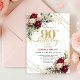 Chic Maroon White Gold Roses 90th Birthday Invite