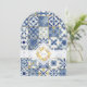 Chic Mediterranean Tiles Monogram Lemons & Flowers Wedding Invitation Cards with Initials.