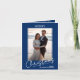 Chic Merry Christmas Script on Blue Folded Photo Holiday Card