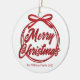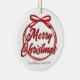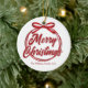 Chic Merry Christmas Script Red Ribbon Bow Ceramic Ornament