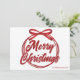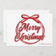 Chic Merry Christmas Script Red Ribbon Bow Holiday Card