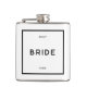 Chic and minimal French, Parisian inspired, monochrome black and white personalized bride hip flask. Perfect for so many occasions... a thoughtful gift for a bride or bride-to-be on her bachelorette party, bridal shower party, wedding party, engagement or honeymoon. Customise with bride's name and wedding destination in a chic minimal sans serif font. Designed to match our Chic Minimal French Black & White Wedding Collection.