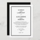 Plain white envelopes are included with paper invitations and will come to fit the invitation size you select. If you don’t need the envelopes, you may choose to not receive them by selecting the dropdown below "Envelopes" and choosing "None." If you’d like to have a design on your envelopes, you can browse all of these available envelopes to find the design that complements your Chic Minimal French Black White Wedding Invitation.