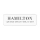 These chic return address labels feature a modern design with a black and white color palette. The last name is written in large capital letters across the top, with the address written all on one line below.