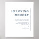 Personalize this elegant minimalist "In Loving Memory" wedding sign. Stylish, clean, simple, modern elegant design in white and blue. 8" x 10" is simply an example design available in a variety of sizes. Ability to select "Edit Using Design Tool" and make changes to text size, style, and position (all except the "and"). Part of our "Modern Elegant Typography Blue Wedding" collection with a variety of coordinating products, including a full wedding signage set. Visit the entire collection at: https://www.zazzle.com/collections/modern_elegant_typography_blue_wedding_collection-119316758339581837