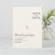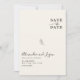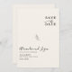 A minimalist black and white design featuring a sophisticated signature script accented with a botanical wreath against an ivory color background. A standout Save the Date wedding announcement with the QR code ability that pairs well with most any modern wedding venue.