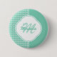 Chic Mint Green Houndstooth With Monogram and Name Pinback Button