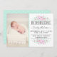 Chic Mint Green & Pink Flowers Birth Announcement