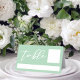 This soft mint green wedding place card features chic white typography for a sweet spring outdoor ceremony. Simple and elegant script on tranquil solid pastel green table cards for a garden reception.