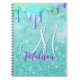 Chic mint unicorn ombre glitter drips monogram Notebook. Cool for school, work or as a journal or diary! To make it extra special, it is also monogrammed and personalized with name or initials or any text you like, click the "customize further" link and use the design tool to modify the design if you like.