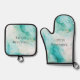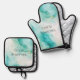 Chic Mint White Gold Bridal Shower Oven Mitt & Pot Holder Set