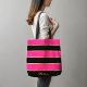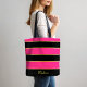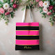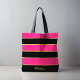 Chic Modern black pink Stripes Pattern with Name Tote Bag