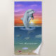 Elegant dolphin, turtles, pearls and rising sun over the ocean Towel. Script can be personalized. Ideal for everyone. Ideal for a Birthday gift.