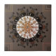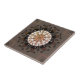 chic modern mandala black white simple brown ceramic tile, stylish mandala pattern surrounded by leaves, these leaves has eyes, these eyes look at the night sky around it,