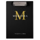 Chic Modern Monogram Black Gold Initial Name Clipboard