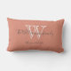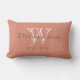 Chic Modern Monogram Family Name Cute Keepsake Lumbar Pillow. A personalized monogram initial and your family's last name and wedding date in script lettering on a salmon background. Makes a unique cute gift for newlyweds. Lovely for newly weds new life together or for your family room. Click personalize this template to customize it quickly and easily. Ships Worldwide fast.