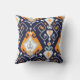 Chic modern orange navy blue ikat tribal pattern throw pillow
