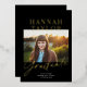 This gorgeous graduation announcement design features modern typography, a horizontal photo, and chic black background - plus your graduate's name and "graduate" in real pressed foil! Class year, school attended, and future school is flat printed in white. This is a simple yet elegant design. You can customize this design even further by adding a photo or additional text to the backer. Foil is available in gold, silver, or rose gold and absolutely shines! Select real foil graduation announcements to add that wow factor!