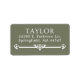 Chic modern white on sage green return address labels featuring a classic serif font above a clean lined scroll for a minimalist feel.