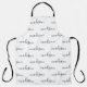 This black and white print apron is perfect for the trendy cook and features a personalized name pattern in black on a white background. Colors of text and straps are editable.