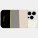 Cover your phone in a fashionable case featuring chic modern stripes in black, gray, blush pink and creamy eggshell white. Thin faux-gold lines separate the colors in designer style. Personalize with your name, monogram or other desired text. You can also delete the sample name shown if you prefer the case without any text.