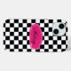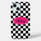 Elevate your style with this trendy black and white checkered iPhone cover featuring a bold hot pink name label. The perfect fusion of classic and modern, this accessory not only provides protection but also adds a touch of sophistication to your device.