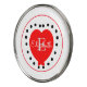 This golf ball marker features a first name and initial letter monogram over a red heart outlined with black dots for the chic athlete. Personalize it in the text fields with a first or last name and initial, remove the text or click customize to select a typeface style, size, and color you prefer. You can also add this design, where it fits appropriately, to other products shown in the TRANSFER scroll bar such as the golf ball, button, sticker or keychain.