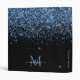 Chic Monogram Black Navy Blue Glam Glitter Recipe 3 Ring Binder