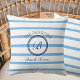 Chic Monogram Blue Stripes Family Name Beach House Throw Pillow