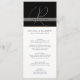 Elegant Chic Monogram Charcoal Black White Wedding Menu. Gorgeous sophisticated designer wedding menu with charcoal text on white featuring a striking pale gray monogram initial over black with family name over charcoal with thin antique gold colored borders. Personalize with Bride & Groom’s Name, Wedding Date, Monogram Initial, Family Name, and Wedding Menu text. All text, fonts, and colors are customizable. We invite you to visit our store, Austen & Grace, to view the full wedding suite, matching products and more. Please contact us if you require any assistance.