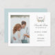 Featuring a chic floral crest in subtle palette of yellow gold, dusty blue and pale blue surrounding your monogram or initials with your name, wedding date and place in a elegant combination of cursive and capital letter, this stunning but cheap photo wedding save the date is perfect for any formal celebration, or elegant wedding. Personalize with your monogram, initials or duogram at the top using the template Card reverse to a matching light powder blue with space for additional text, like formal invitation to follow, rsvp, wedding webside or other important information.