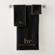 Chic Monogram Gold Initials Name Black Bath Towel Set