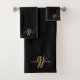 Chic Monogram Gold Script Name Black Bath Towel Set