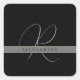 Chic Monogram Initial Name Charcoal Gray Black Square Sticker