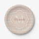Chic Monogram Light Brown Houndstooth With Name Paper Plates