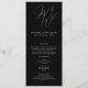 Elegant Chic Monogram Modern Black and White Wedding Program. Gorgeous sophisticated designer wedding program with white text on black featuring a striking pale gray monogram initials over black on front. Personalize with Bride & Groom’s Name, Wedding Date, Monogram Initials, Family Name, and Thank you message, the ceremony. details text on the front, on the back there is white text on black to be personalized with the names of your wedding party (or any text you like) All text, fonts, and colors are customizable, and can be added or deleted as you choose using the tools provided within Zazzle’s customization menus. We invite you to visit our store, Austen & Grace, to view the full wedding suite, matching products and more. Please contact us if you require any assistance.