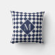Chic diagonal navy blue and white checkered pattern features your monogram in a large dark blue diamond with a white border on each side. Add your initial in the sidebar. Other pillow options available in the sidebar.