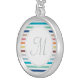 Chic Monogram Pastel Rainbow Horizontal Stripes Silver Plated Necklace