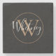 Chic Monogram Script Name Black Gold Stone Coaster