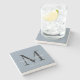 Chic Monogram Script Name Wedding Date Dusty Blue Stone Coaster