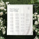 This chic and minimalist wedding seating chart tapestry features a contemporary set of fonts, couple monogram and alphabetical seating, against a light ivory background. Understated elegance for the modern and stylish couple.