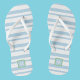 Chic Monogram White andLight Blue Stripes Flip Flops